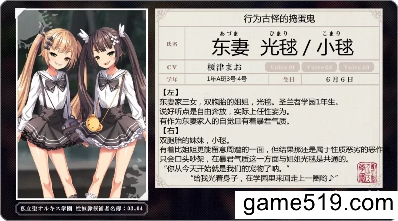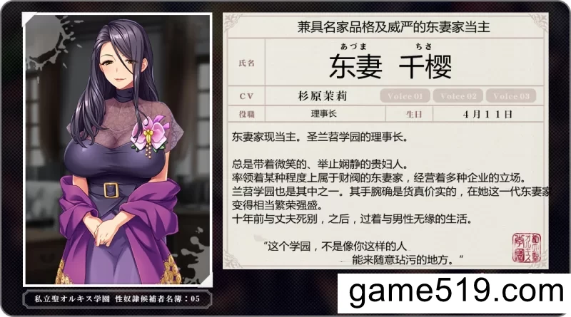在现东妻家当主担任理事长的学园里,如今其女儿们作为在籍学院长和学生置身其中.