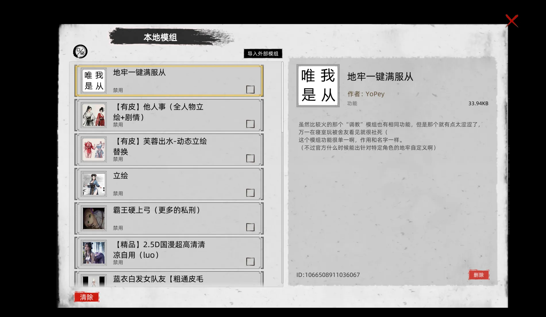 模组开启方法:创意工坊–本地模组