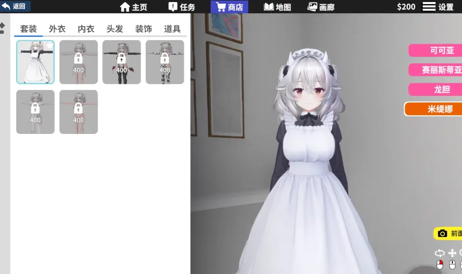 - “现金”获取系统及服装购买功能。