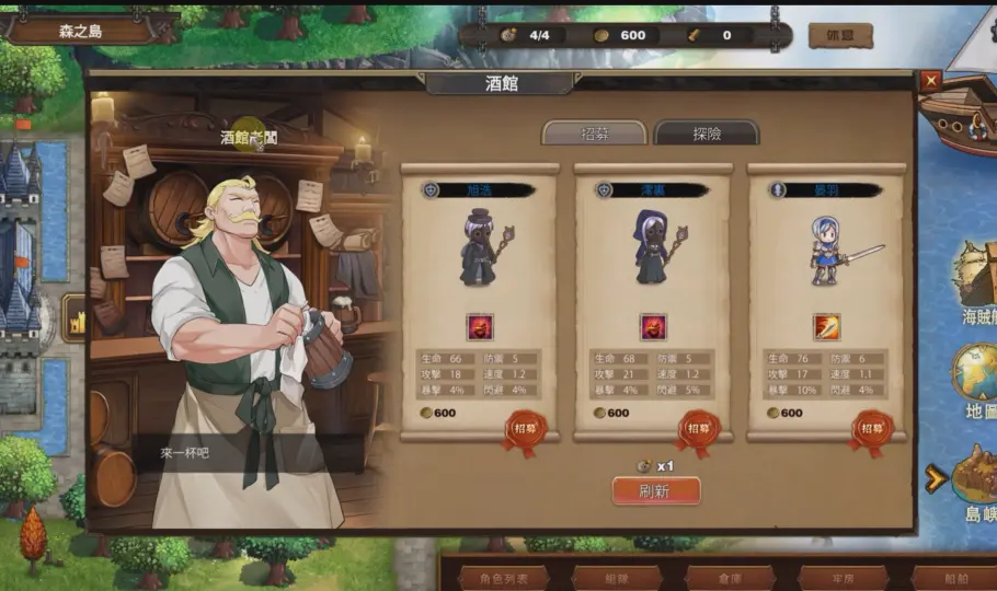 海上战略+地域抢夺SLG玩法,细节满满,各种升级,多个女海贼占领不同岛屿。