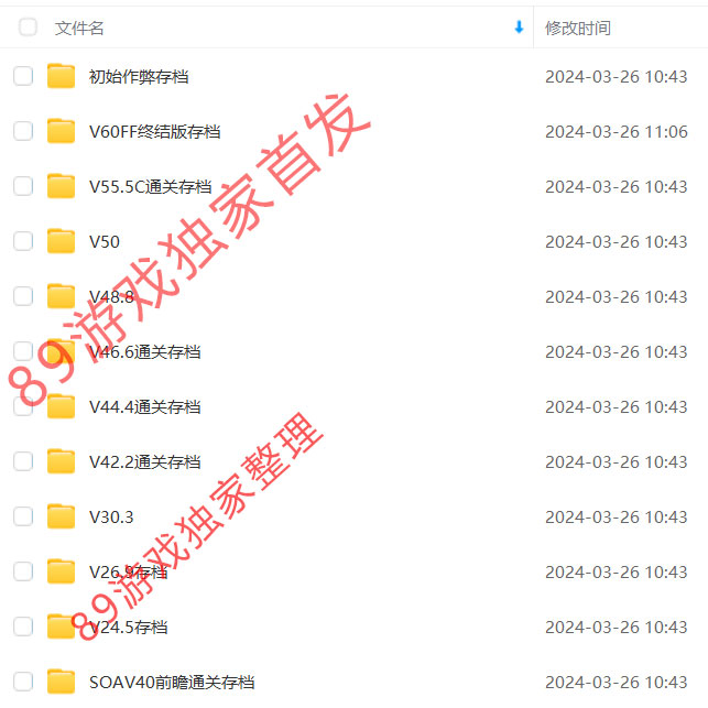 最近有同学问89游戏小编有没有SOA截止V50版本的存档,我说没有,问他给他V60终结版的存档行不行?他说他想要亲自体验V50以后开始的剧情,V50前的版本他已经体验过了 ,但是丢了存档,因此想要V50的存档,89游戏小编恍然大明白,确实是有这样的需求存在。于是小编多方查找资源(其中不少是付费购买),终于汇总了SOA全系列从初始版本作弊存档到V60终结版存档,不同版本的通关存档大全,现分享给大家,所有存档截图如下: