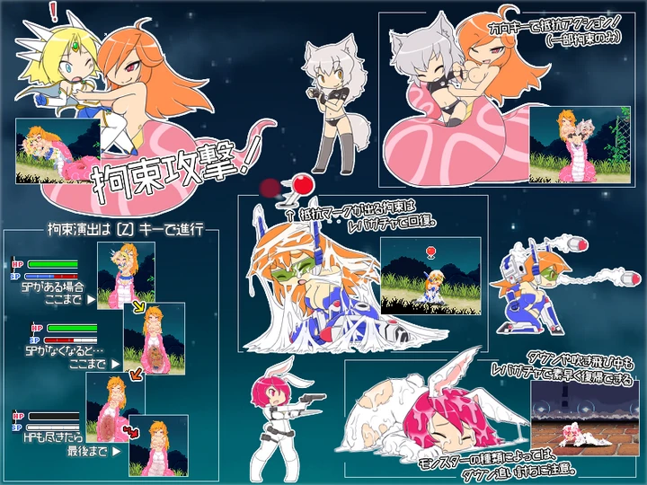 这个是类似合金弹头的横版小游戏,难度不高,流程短,碰到不同的魔物就有不同的h场景,不需要作弊码和存档的。