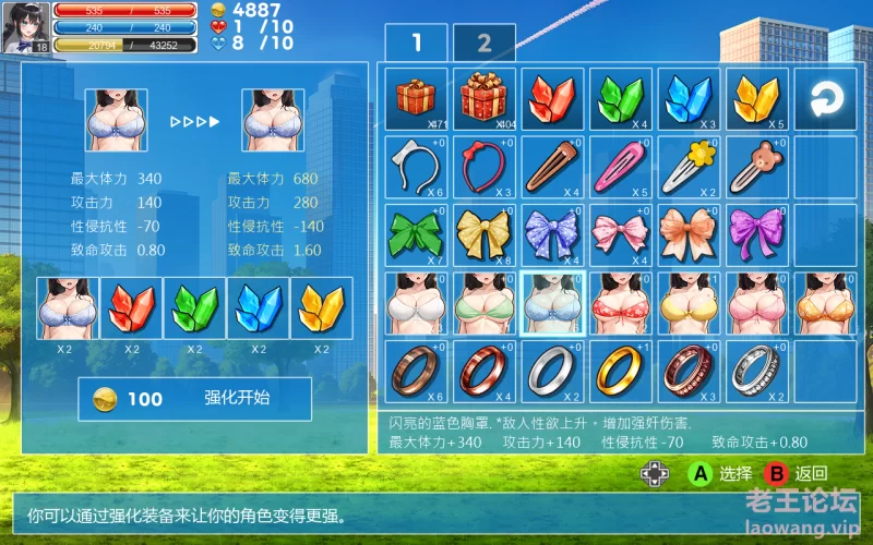 强化物品并挑战高难度关卡。