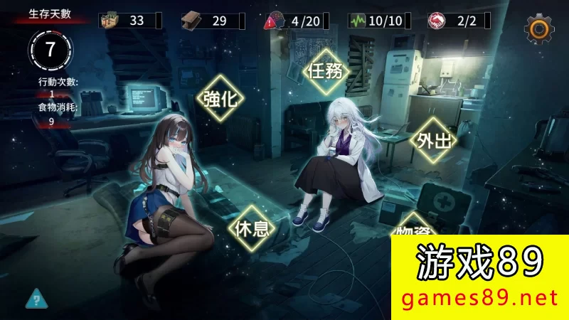 游戏开始时,每日有三次行动机会,每日会固定消耗一定食物。