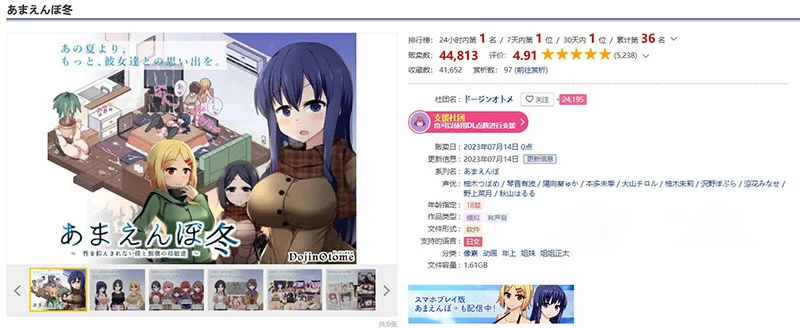 推荐理由:DLsite模拟类累计销量榜第5名,夏日狂想曲续作,永恒的经典